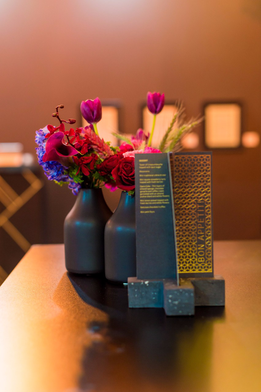 and I had the pleasure of creating a beautifully cohesive set of stationery that featured menu designs, coasters, napkins, and vinyl signage on behalf of Aleit Events.